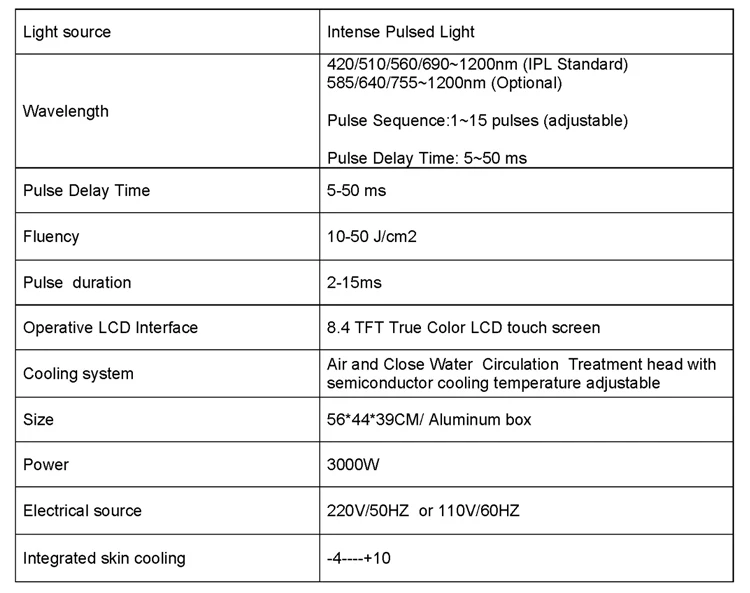 1. in every handpiece it has 7 optional sapphire filters and big spot size 15*50mm