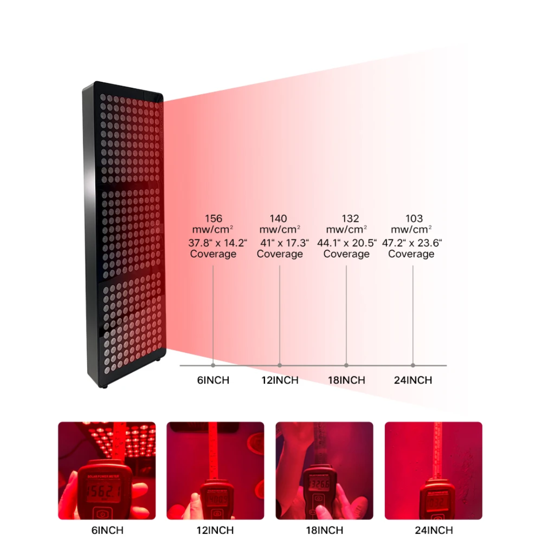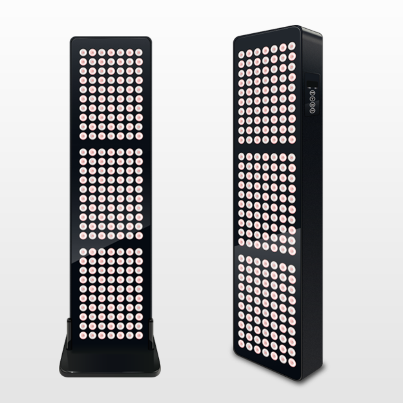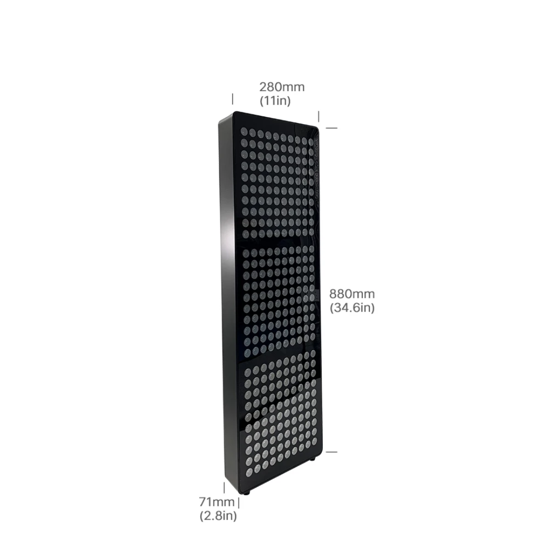 With 210 high-output LEDs and dual spectrum technology (630nm, 660nm, 810nm, 830nm, 850nm), this panel effectively targets both surface skin and deeper muscle tissues. Red light supports collagen production, skin repair, and rejuvenation, while near-infrared light penetrates deeper to relieve pain, reduce inflammation, and accelerate tissue healing.